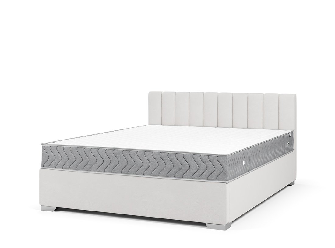 Кровать «Agata» выполнена в сдержанном лаконичном стиле и понравится ценителям простых и понятных форм в интерьере. Эта кровать выполнена без царг, означает, что размер спального места соответствует габаритам кровати по ширине, что делает её особенно удобной для небольших помещений и позволяет максимально эффективно использовать пространство. Кровать «Agata» компакт комплектуется удобным изголовьем с вертикальными полосами в виде декора. К ней отлично подойдет матрас ЭОС Тип 4/5