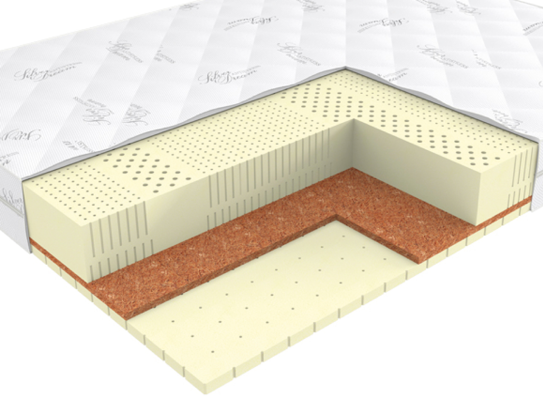 Натуральный гипоаллергенный материал. Благодаря пропитке из натурального латекса, волокна прочно скреплены в цельную плиту. Латексированная кокосовая плита придает матрасу жёсткость и обладает бактерицидными свойствами. Производство – Enkev, Польша.