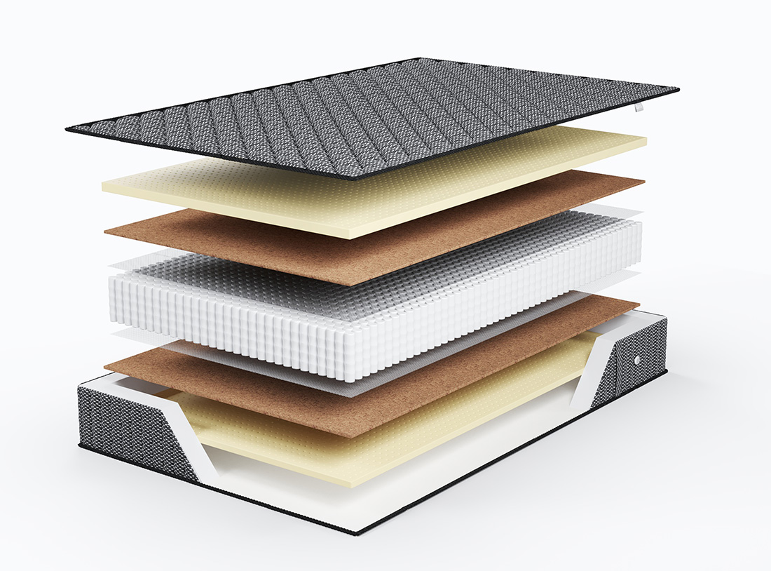 Материал потрясающей прочности. Используется как дополнительный слой, придающий жесткость и изолирующий пружинный блок от настилочных слоев. Делает матрас ещё прочнее и долговечнее