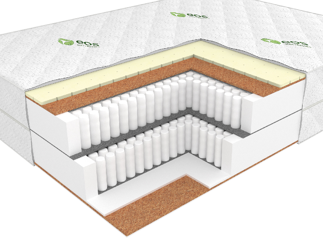 Матрас EOS Идеал 39 – самая высокая модель матраса из всех коллекций. Два блока независимых пружин создадут максимальный ортопедический эффект. Гипоаллергенные природные материалы гарантируют здоровый сон.