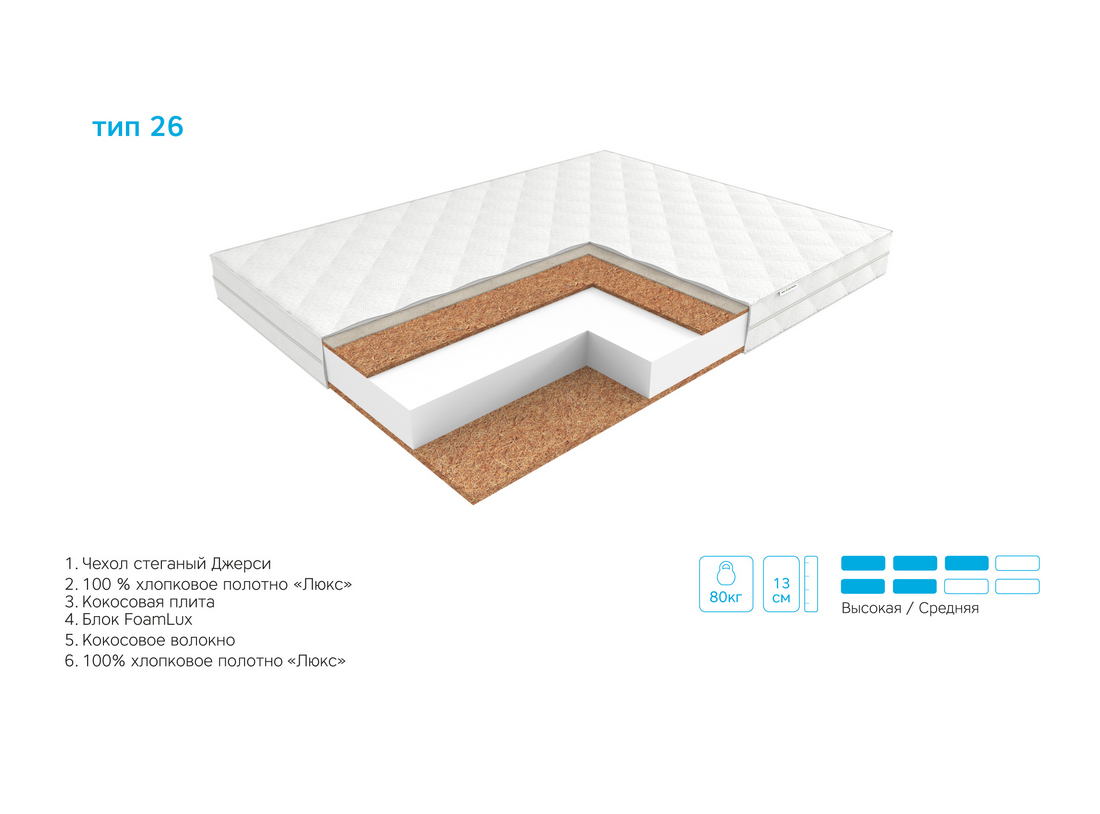FoamLux (пенополиуретан) ,Кокосовая койра ,Хлопковое полотно |