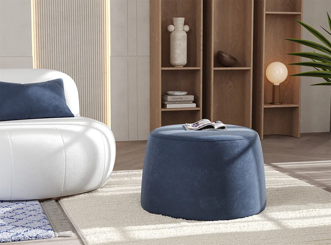 Пуф М — практичный элемент интерьера, который отлично дополнит любую комнату. Благодаря мягкой обивке и компактной форме, он создает комфортную зону для отдыха или общения.