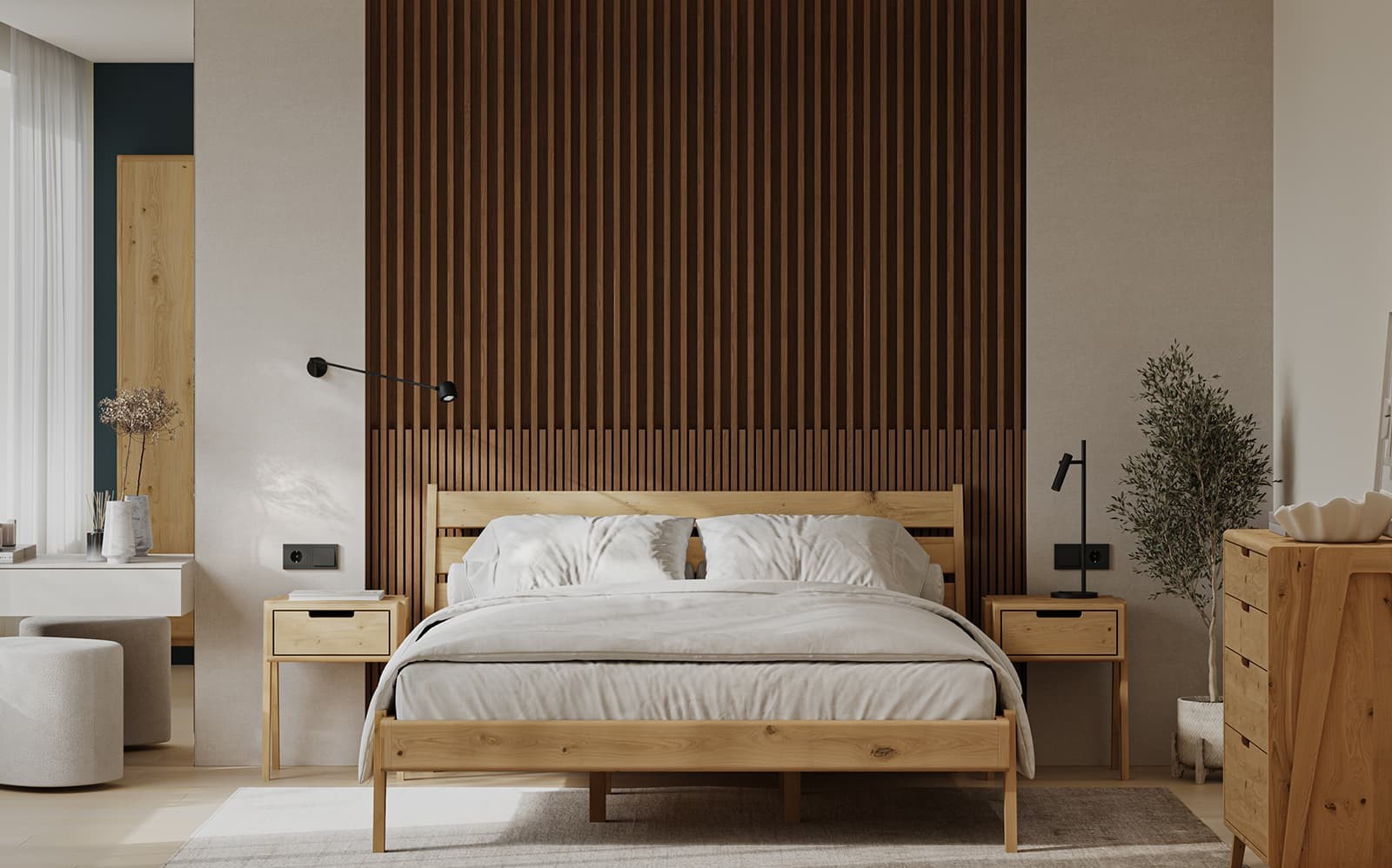 Тумбочка Тенерифе — это стильное и практичное дополнение к любой спальне. Ее конструкция выполнена из натурального дуба, что придает изделию прочность и теплую природную атмосферу. Тумба обладает компактными размерами, идеально подходящими для размещения у кровати. Внутри расположена одна вместительная раздвижная полка, позволяющая удобно хранить книги, очки, мелкие предметы и другие необходимые вещи. Поверхность тумбы гладкая и приятная на ощупь, а ее естественный рисунок дерева подчеркивает уникальность каждой детали. Такой предмет мебели станет надежным и эстетичным акцентом в интерьере спальни.
