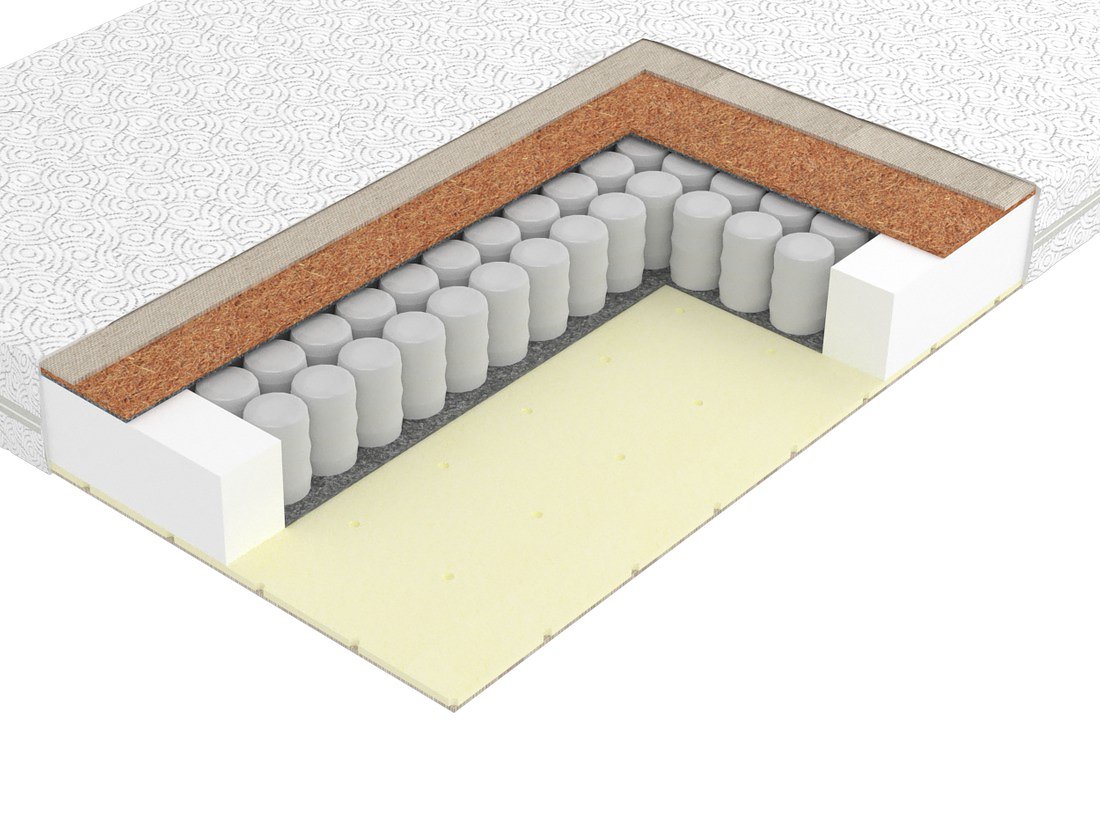 · Хлопковое полотно. Натуральный материал, состоящий из нескольких слоёв спрессованной хлопковой нити. Изолирует чехол матраса от шероховатостей других наполнителей, применяется для водной и воздушной регуляции, обеспечивает идеальный микроклимат.