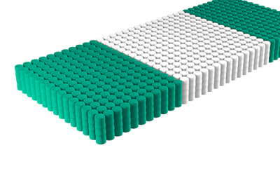 В пружинном блоке, усовершенствованное расположение пружин в виде пчелиных сот, позволяет увеличить плотность пружин до 320 пр/м2. Благодаря этому матрасы обладают исключительной устойчивостью к повышенным нагрузкам на протяжении длительного времени.