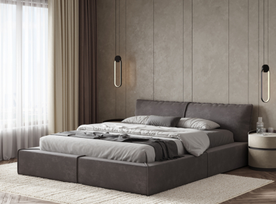 У нас можно заказать онлайн или купить в Минске полуторную кровать со встроенным металлическим или деревянным основанием с текстильной обивкой. Каркас опирается на подиум или ножки. Они жёстко поддерживают основание, защищают от повреждений, выполняют декоративную функцию.